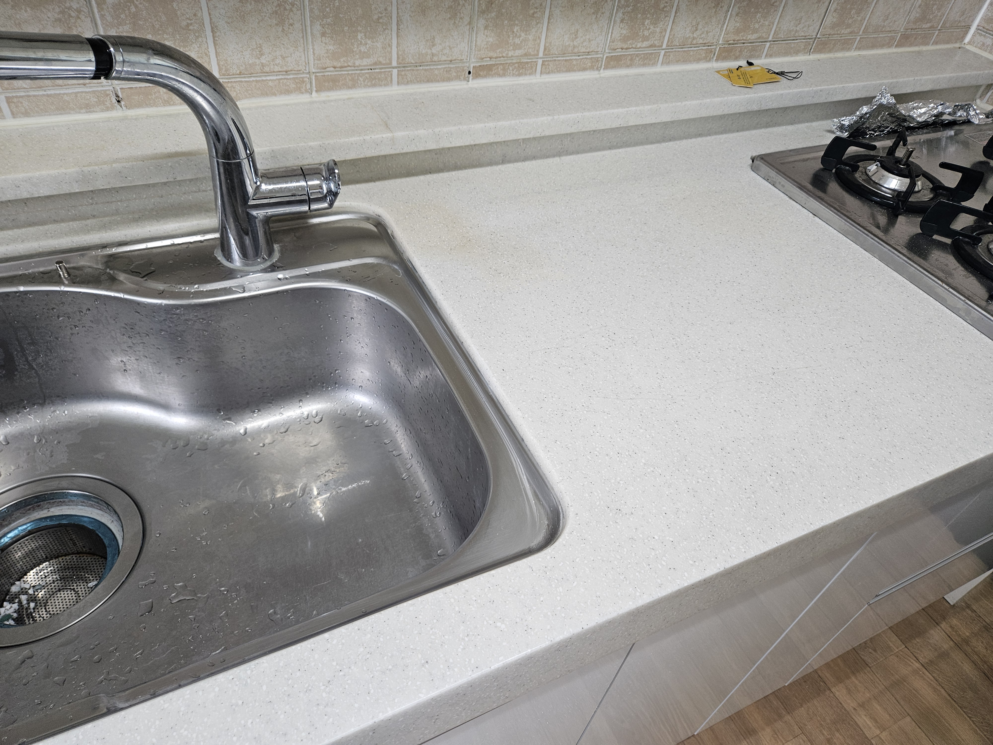 이미 싱크대 문짝 교체를 한 상태라 싱크대 전체를 교체하기는 어렵고, 상판을 새것으로 교체하자니 견적이 80만 원 넘게 나왔다. 고민하다 싱크대 관련 이것저것 수리 정보를 찾다 보니 싱크대 깨진 것, 금 간 것을 수리해 주는 업체가 있었다.