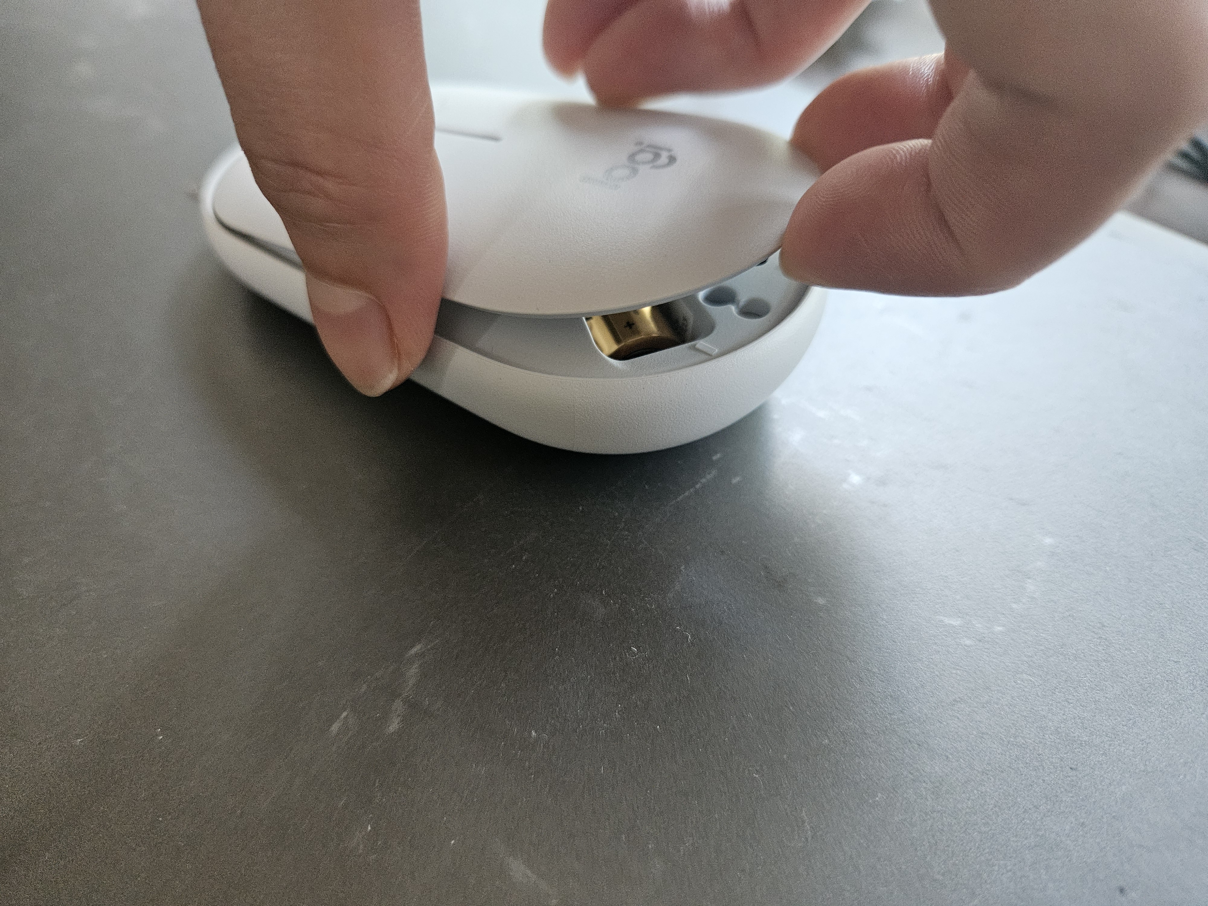 처음에 마우스를 받고 노트북에 연결하려고, usb포트에 꽂을 연결 수신기를 찾는데, 그 공간이 비어 있다. 헉... 당황.