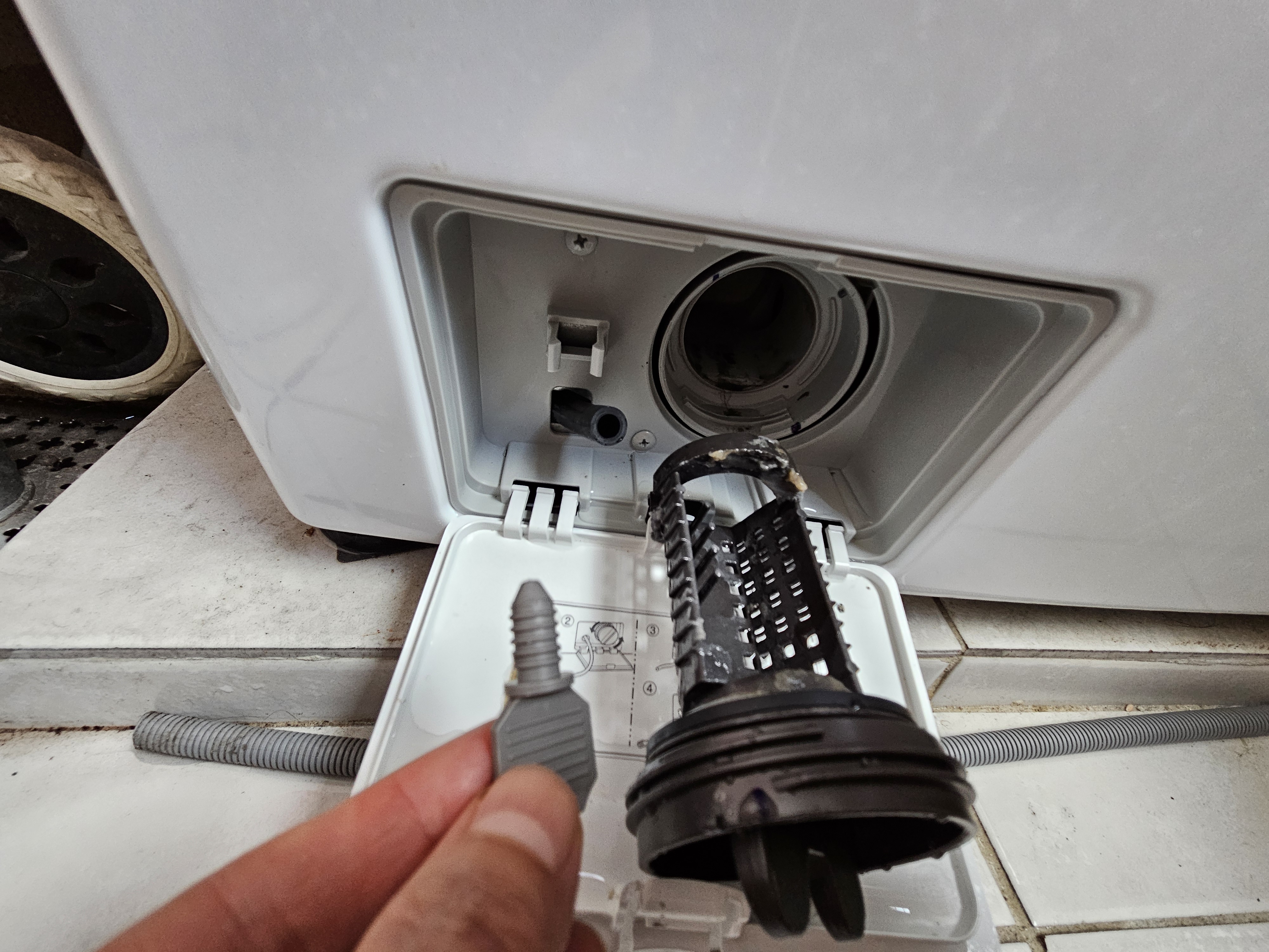 갑자기 세탁기 물빠짐이 안되거나, 세탁기 문을 열었을 때 냄새가 나는 느낌이라면 세탁기 필터 청소와 물 빠지는 곳 청소가 필요하다.