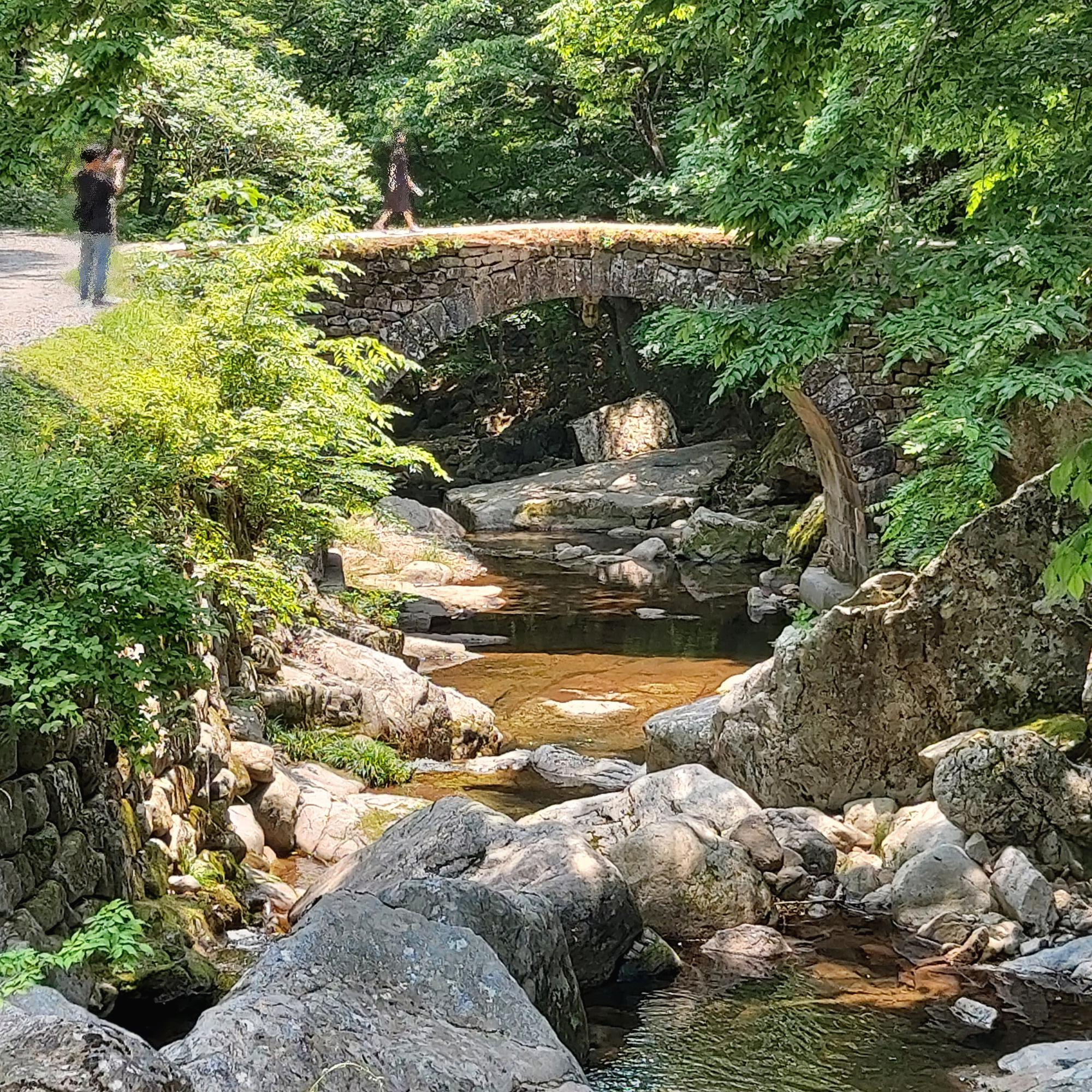 주차장에서 내려 천천히 20분 정도를 걷다보면 갈림길이 나온다. 법정스님이 직접 만들고 생활하셨다는 암자 가는 길도 있고, 선암사 가는 길도 있고, 등산로도 있다. 선암사 가는 길로 조금 더 힘내서 올라가면 아랫부분이 무지개 모양인 아름다운 다리가 나온다. 계곡의 너비가 넓은 편이라 숲속에 놓인 다리치고 규모가 있으며 다리 아래 아치가 크다. 자연암반 위에 다리 기단이 놓여져있어 급류에 떠내려갈 위험이 없다고 한다.