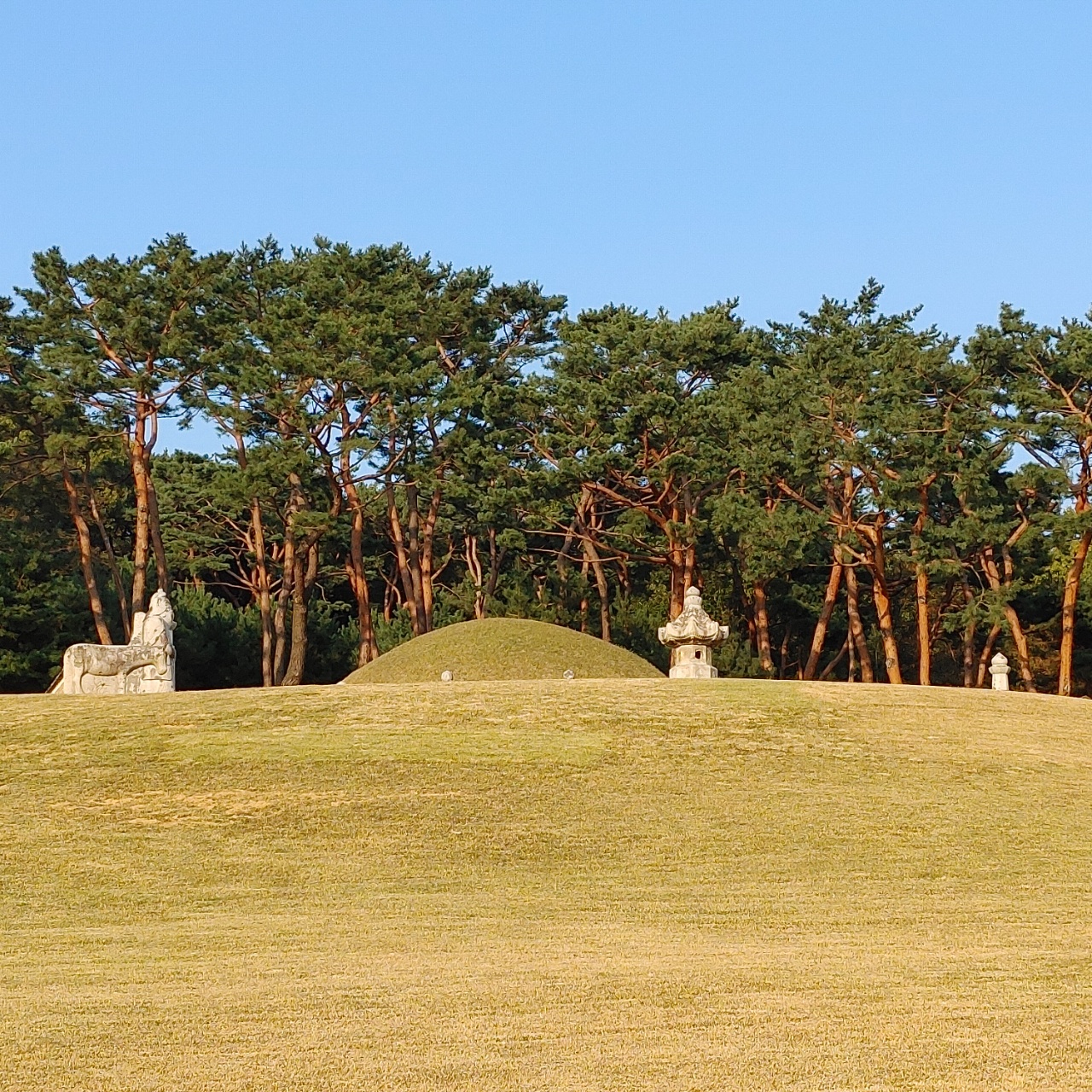능이 세계유산으로 지정되기 전, 융건릉에 왔을때는 능 가까이 가서 한 바퀴 돌아보고, 석상도 가까이서 볼 수 있었다. 지금은 제실 뒤쪽으로 울타리가 쳐져 있어서 멀찍이서 인사드려야 한다.