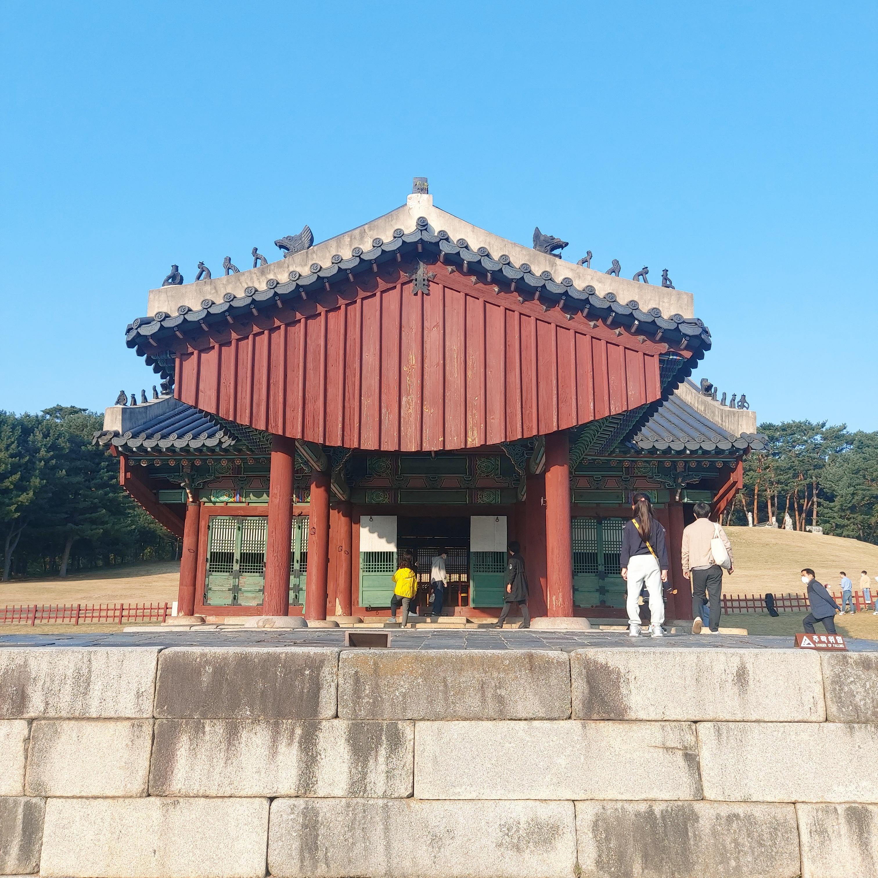 능이 세계유산으로 지정되기 전, 융건릉에 왔을때는 능 가까이 가서 한 바퀴 돌아보고, 석상도 가까이서 볼 수 있었다. 지금은 제실 뒤쪽으로 울타리가 쳐져 있어서 멀찍이서 인사드려야 한다.
