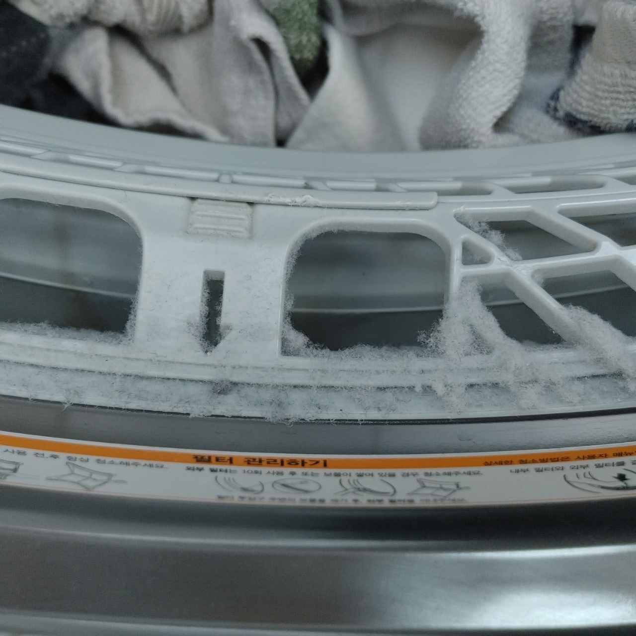 그런데도 먼지가 잘 안걸러진다. 빨래가 마르는데 시간이 오래 걸린다. 건조 시간이 자꾸 늘어난다. 건조 후 필터 아래쪽 공간에 물이 차고, 물방울이 맺힌다.