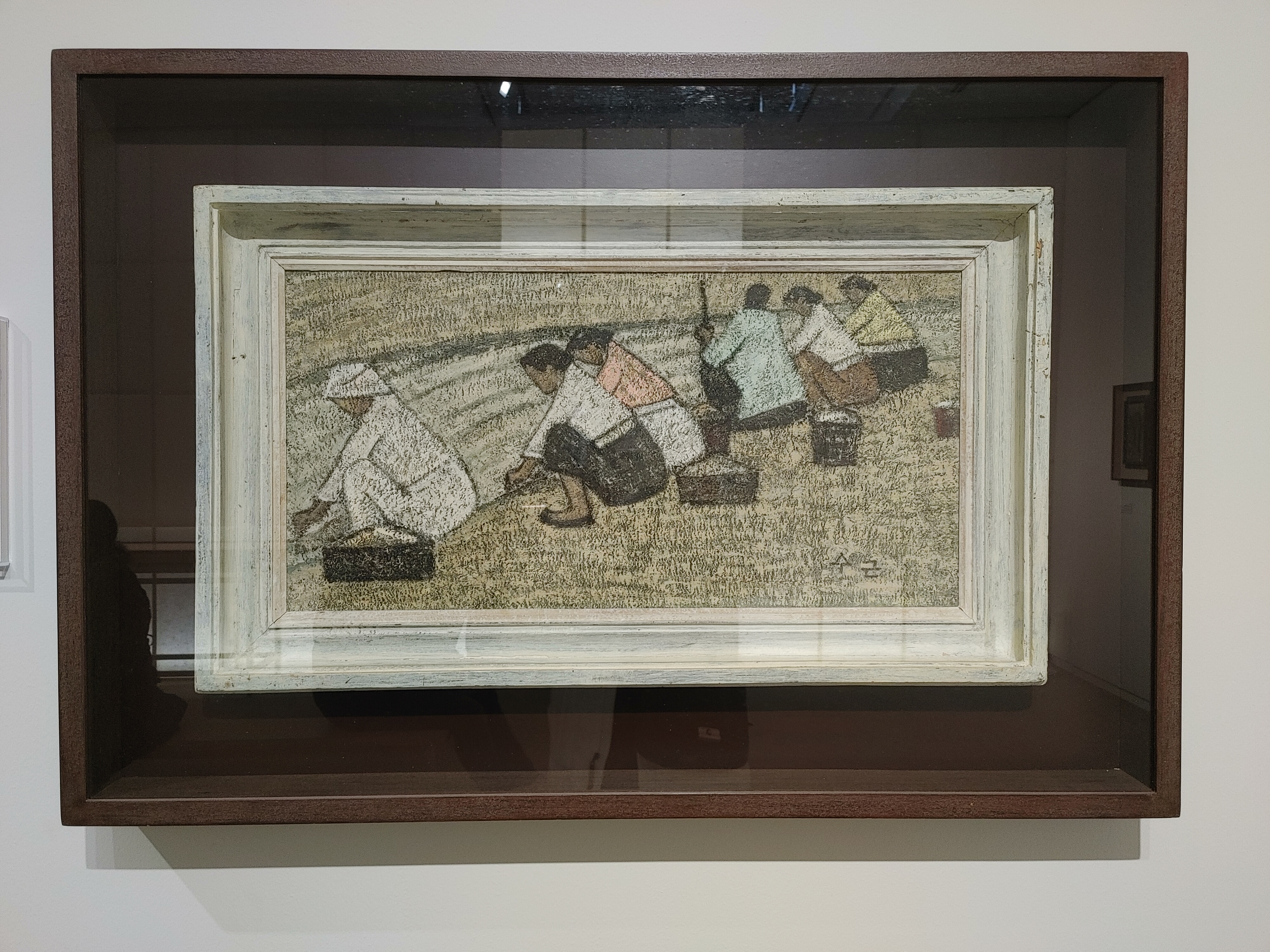 물감을 여러 겹 쌓아 올려 거칠거칠한 질감을 만들어 내고, 형태를 단순화시키고, 색을 아껴 아껴 쓴 박수근 화백의 그림이 후반으로 가니 색이 조금 더 많아지고, 그림의 톤이 밝아지는 느낌이었다. 그림에서 나타나는 질감도 조금은 달라져 보인다. 미술관을 나서는데 마음에 힘이 생긴 듯하다.