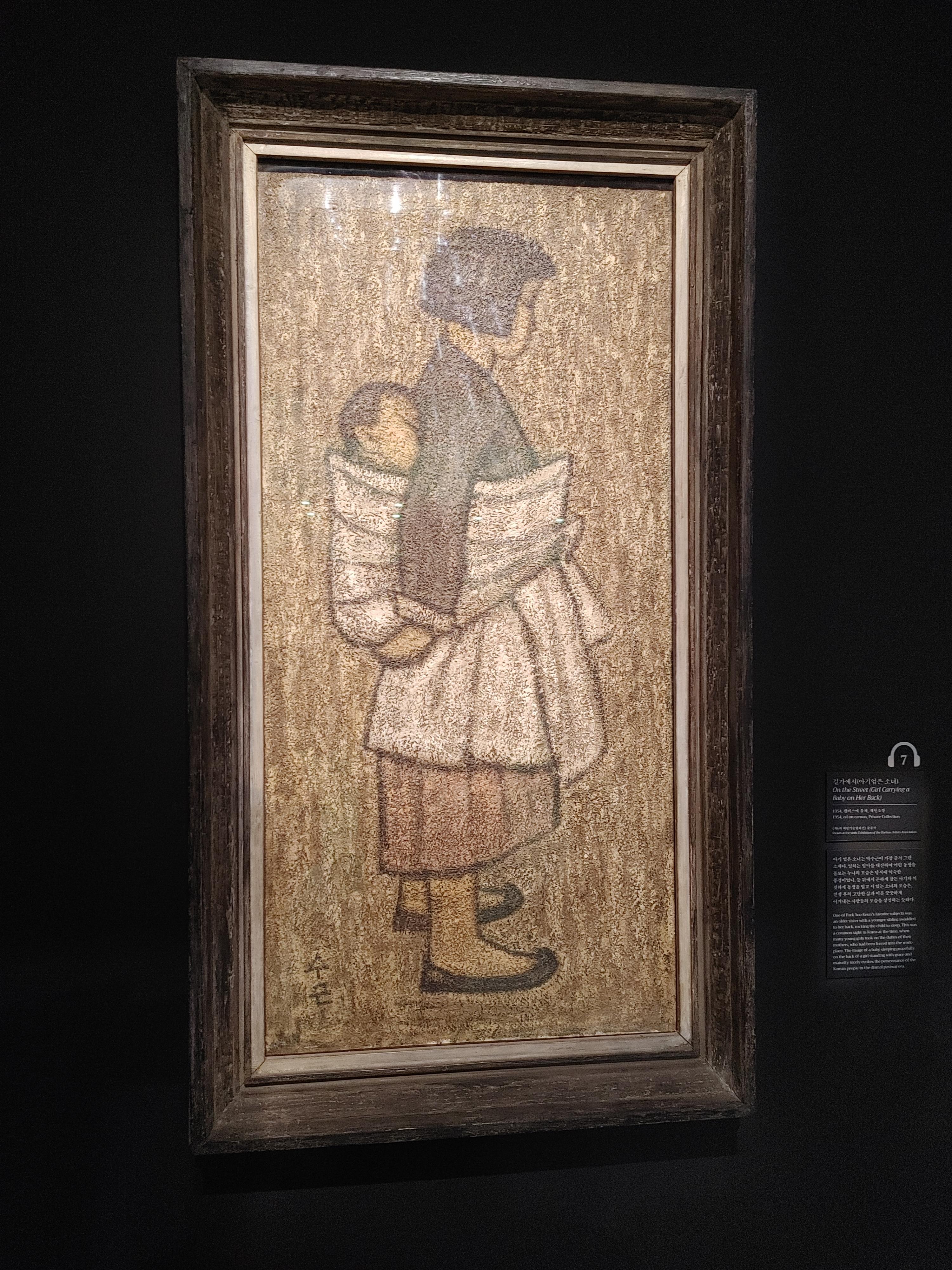박수근 그림에는 아기 업은 여인이 많이 등장하는데, 그중 아기 업은 소녀의 그림은 외롭고 쓸쓸해보여 안쓰러운 마음이 들었다. 그런데, 마지막 전시실에서 아래 그림을 보고, 위 아기업은 소녀 그림이 왜 그리 쓸쓸해 보였는지 알게 되었다.